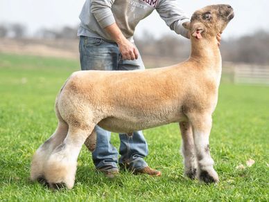 I feel this is the stud buck we have been looking for and the flock changer that we need. The Alamo is blessed with extreme terminal shape, explosive base width, massive hip dimension, that hard handling muscle and that structural correctness the we hunt for. What’s unique about this power piece is that he is also short bladed, has great center of body balance and is exceptionally white featured. The build and design of this guy isn’t the only thing that is unique, this pedigree is unlike anything else being offered. Hostile Take over (American Outlaw son) on an absolute stud Say When daughter. Thank you Brenden Benson Livestock for giving us the opportunity to give The Alamo a new home at Clark Family Show Lambs. We can’t wait to start building our flock around this genetic piece.